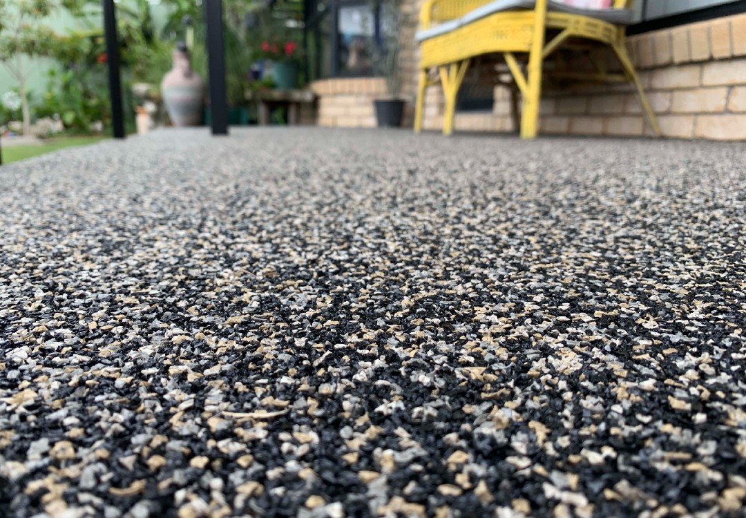 Vuba Stone is a resin-bound stone surfacing system that combines natural stone aggregate with a UV-stable resin. It creates a seamless surface that looks great and holds up in coastal conditions and warm/cold seasonal shifts.